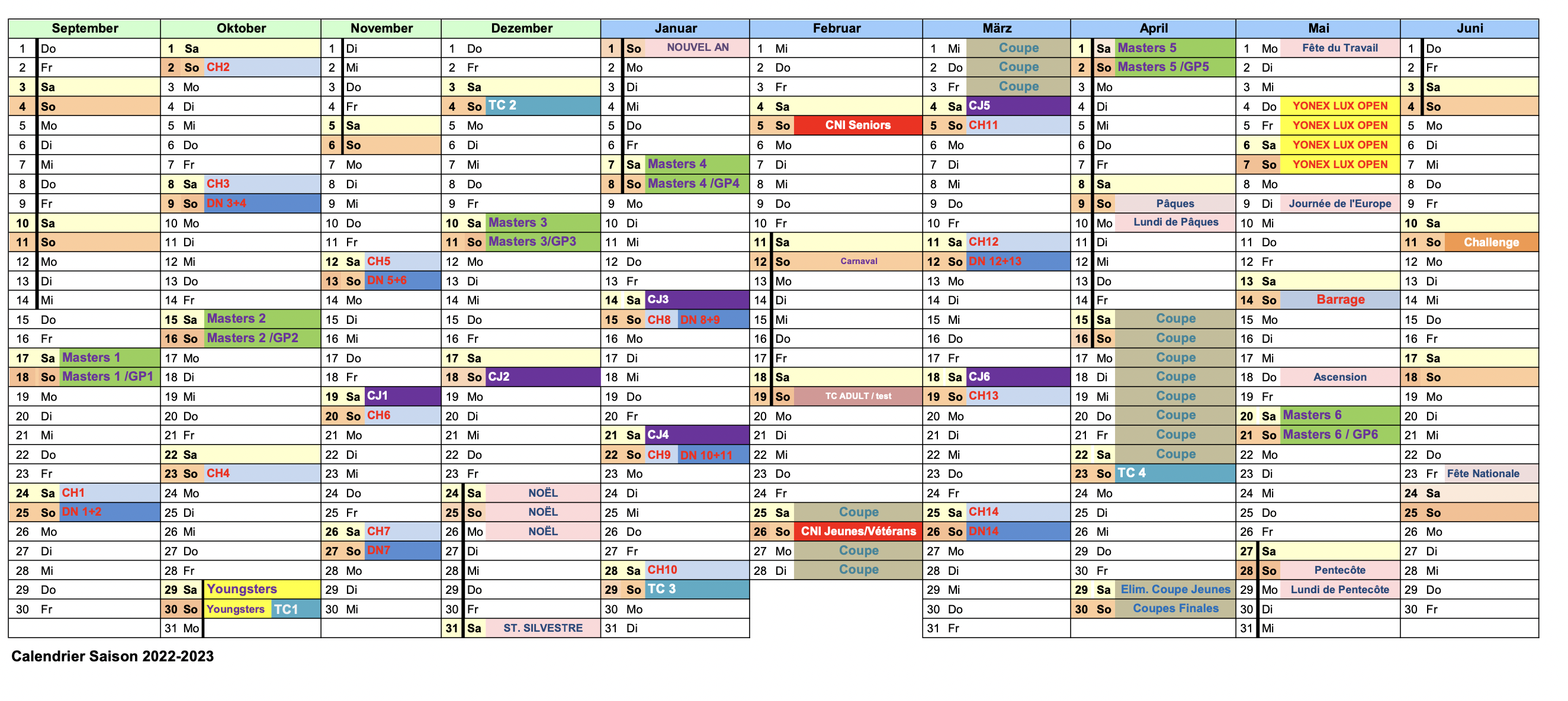 Calendar Season 2022-2023